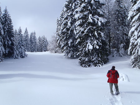 Avec des conditions dignent du grand nord – température sibérienne et neige en abondance – cette sortie de prospection en raquettes dans la région du Plan de la Baume (zone du Réseau des Fées) n’a permis de trouver qu’une doline colmatée; aucun orifice ouvert dans la neige n’a été repéré. Ce sera peut-être pour une autre fois car la zone est vaste.