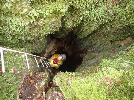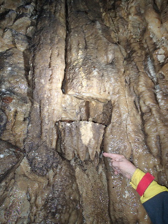 Cet orifice donne sur une petite baume qui est malheureusement sans suite, mais on peut y observer une ancienne coulée de calcite dont la base est cassée et décalée (néotectonique ?).