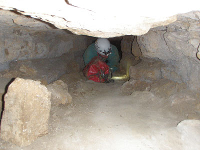On rejoint ensuite un court boyau suivi d’une petite galerie.