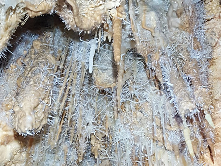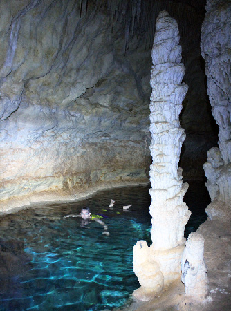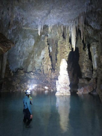 Et enfin, « last but not least », il y a plein de grottes dont la visite est vraiment agréable : chaleur, beaux volumes et concrétionnement massif ou bien fines cristallisations. Dans l’une, il est même possible de faire une petite baignade souterraine dans un lac à l’eau transparente et dans une autre, c’est par la mer et à la nage que l’on y accède (avec en prime une voûte mouillante au début de la galerie). Les cavités suivantes ont été visitées :- Cova de Cornavaques- Cova des Coloms- Coves des Pont-Pirata- Cova des Ases- Cova des Genet- Cova Tancada de Cap de Menorca- Cova des Xots- Cova des Moro