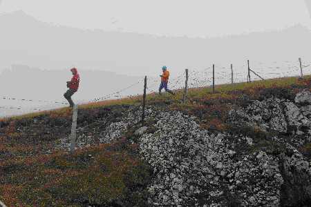 Malgré la météo annoncée pas terrible, nous avons quand même décidé de maintenir cette nouvelle sortie pour le Groupe Patrimoine Vaud (GPV), surtout pour aller salir la nouvelle combi de Nicoleta. En plaine il y avait du soleil, mais les nuages étaient de plus en plus présents au fur et à mesure qu’on montait vers le sommet. En route vers le chalet du Mont Tendre nous avons rencontré des coureurs du Trail de la Vallée de Joux. Les courageux !Nous sommes d’abord allés à la Baume Sud no.2 du Mont Tendre.