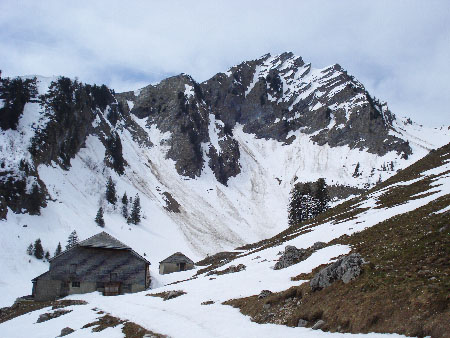 Pour aller voir où en est la neige en altitude, on (Hervé et Jack) se décide pour une petite prospection sur notre chaîne de montagne favorite. On est d’abord agréablement surpris de pouvoir monter en voiture jusqu’au Pré d’Albeuve mais en arrivant au Vanil des Artses on constate que le danger d’avalanche est vraiment trop important au pied des parois.