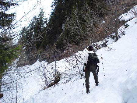 Une petite grotte repérée par Hervé devra encore attendre qu’il y ait moins de neige pour qu’on puisse l’atteindre. En fin de compte on aura passé notre temps à mettre ou à enlever les raquettes en fonction de la quantité de neige mais ce fut une bonne journée pour un début de saison.Jack