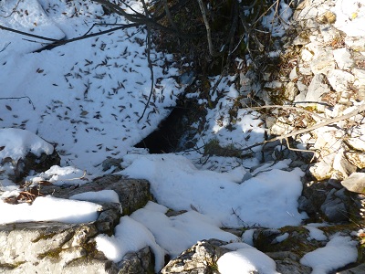 Nous arrivons à l’entrée principale (Gouffre de la Voie lactée) qui est bien cachée sous la neige.