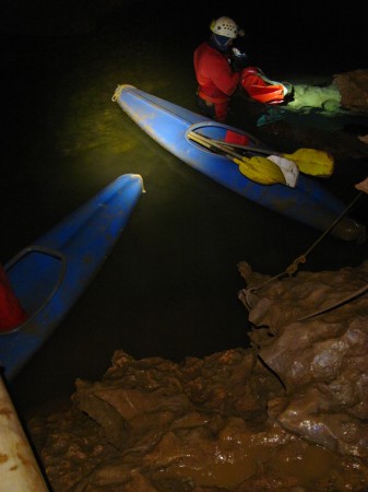 Au bout d’environ 300m de kayak, il y a environ 30m où il faut porter les kayaks (à 2 ça se fait très bien), puis de nouveau 300m de kayak avant d’arriver au siphon. De là, on peut encore faire une petite centaines de mètres à pied pour atteindre un petit lac aux aux noirâtres dont l’eau à l’air de ne jamais être renouvelée. Ensuite on entame le retour, bien plus rapidement qu’à l’aller, principalement car on s’arrête beaucoup moins pour prendre des photos.Bref, une superbe sortie à recommander, par contre néoprène indispensable et code du cadenas à demander (ou encore mieux, demander à Jean-Luc s’il est partant pour jouer le guide).Photos : AnnaTexte : Felix